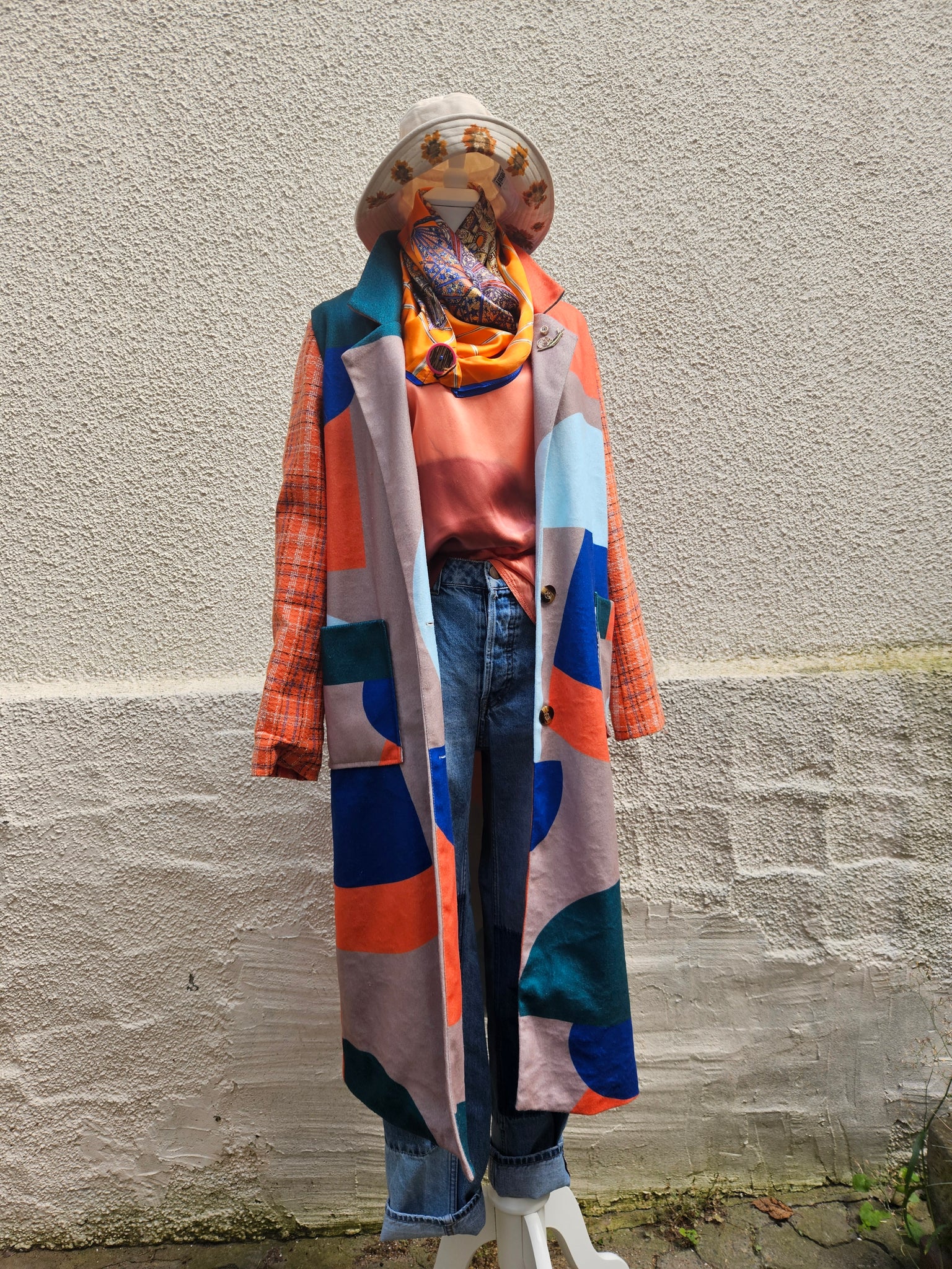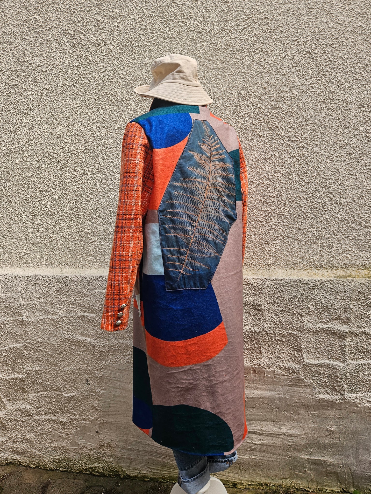 ⢠This lightweight artwearable Trench Jacket combines two jackets into one, featuring a handcrafted Cyanotype backpatch from fern harvested in my own garden šæ
