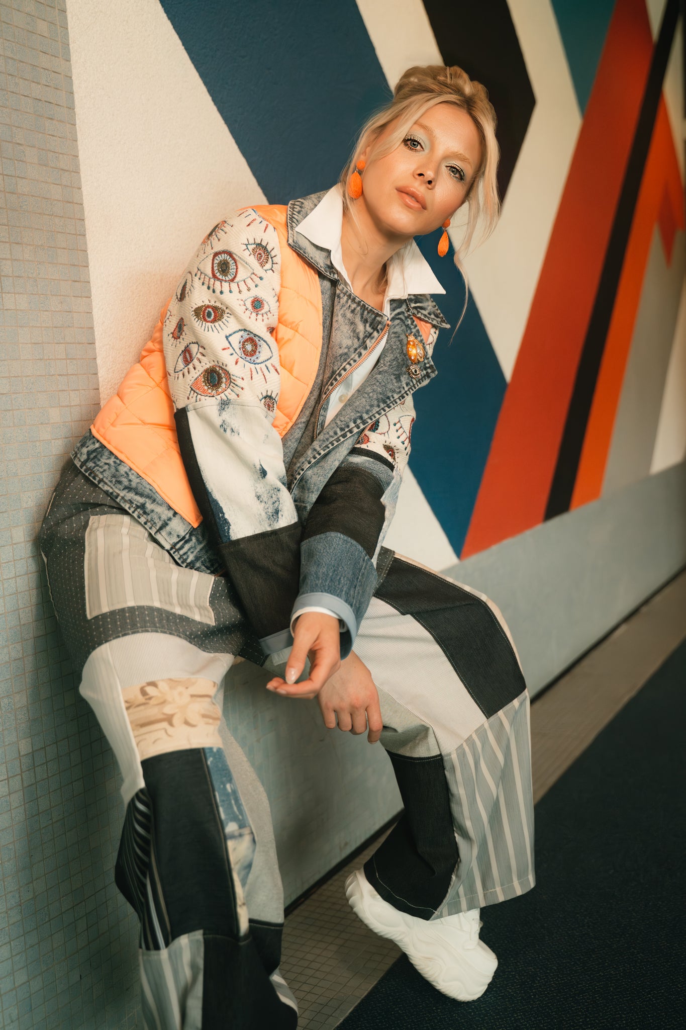 Eye Sea You Orange Denim Puffer